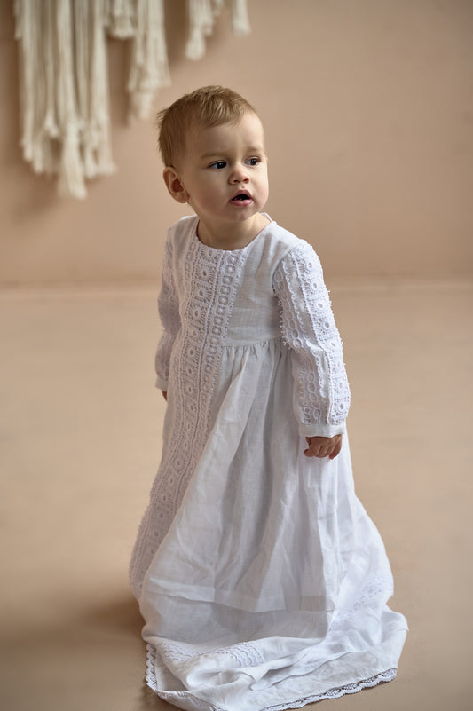 Unisex Baptism Gown Linen Vintage