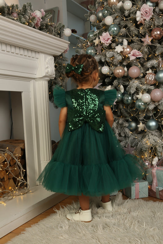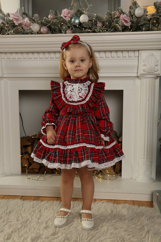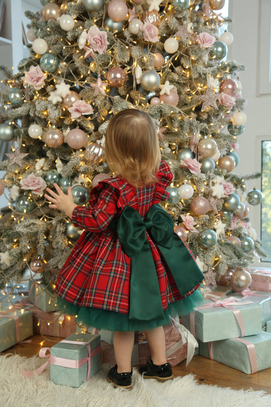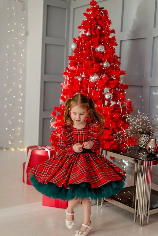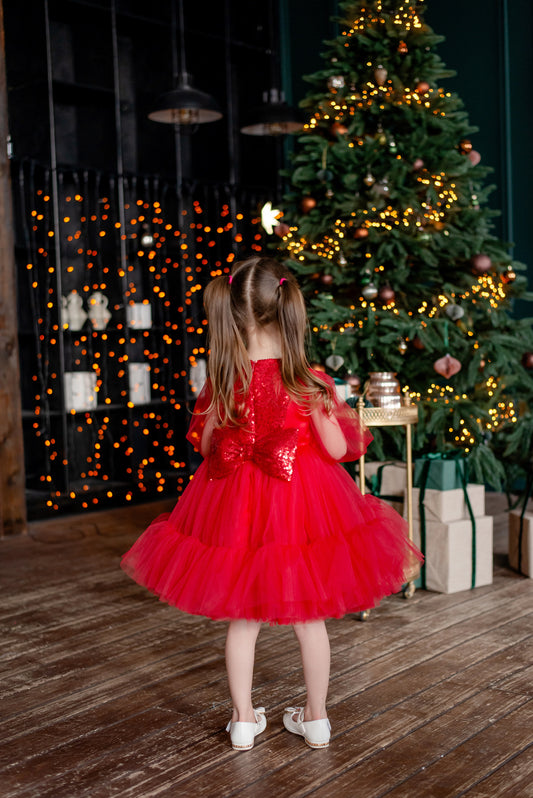 Red Toddler Christmas Dress with Polka Dots — Long-Sleeve Festive Puffy Dress for Girls