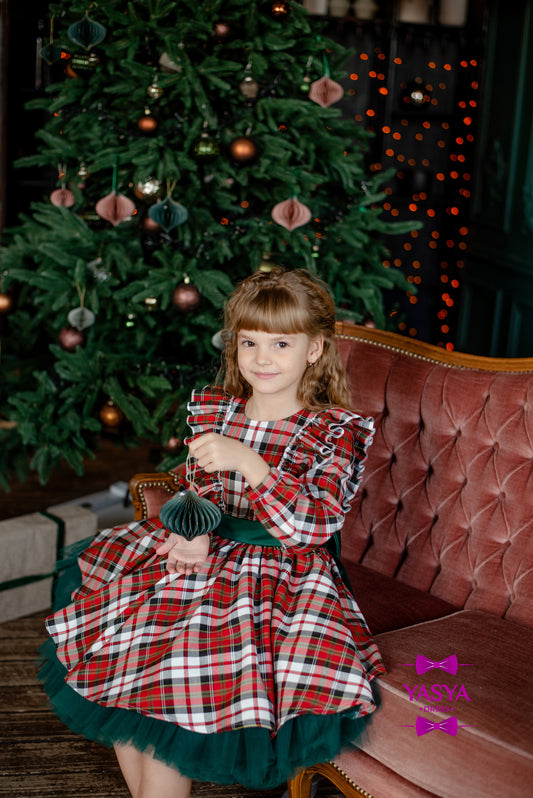 White Toddler Christmas Dress with Polka Dots — Long-Sleeve Puffy Tulle Dress for Any Celebratio