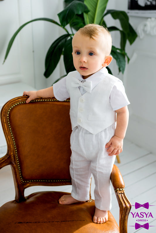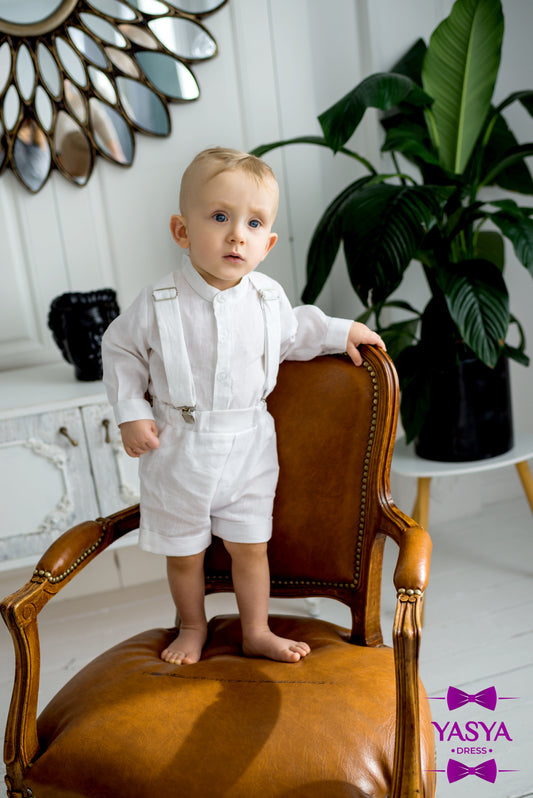 Linen Baby Boy Outfit for Christening or Ceremony