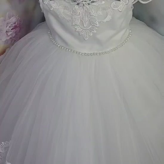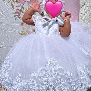Ideal for newborns, infants, and toddlers, it’s made with premium fabrics and delicate details, ensuring your little one shines on her big day. A timeless choice for creating precious memories.