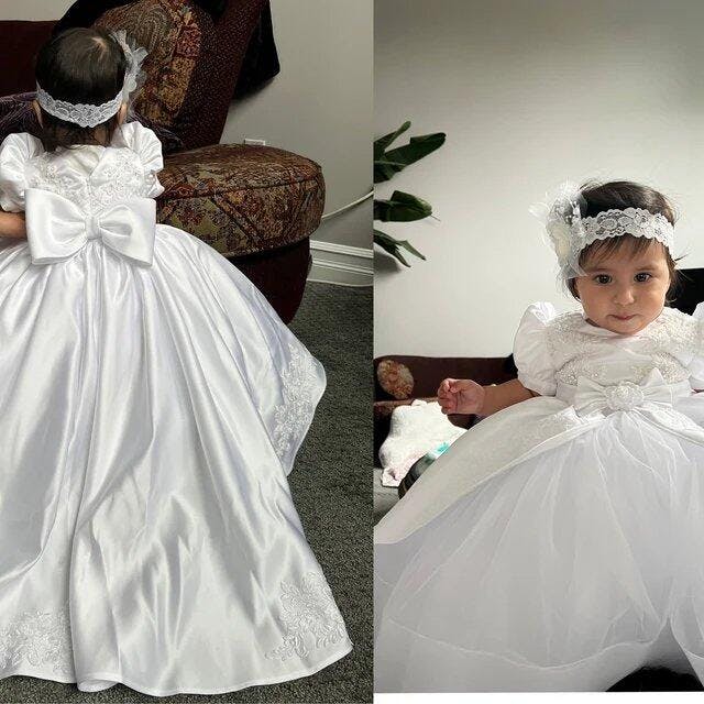 Celebrate your little one’s special day with our exquisite baby baptismal dress, thoughtfully designed to make every moment unforgettable. Crafted with love and care, this elegant white dress embodies timeless tradition and delicate beauty, perfect for a blessing dress or a cherished christening gift. The main highlight of this dress is the detachable train. Which is easy to remove if desired.